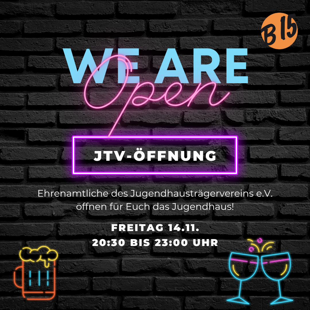 Veröffentlicht am 14. November 2025 von JugendhausB15JTV-Öffnung November Am 14.11. lädt der JTV erneut zur monatlichen selbstverwalteten Öffnung ein. Kommt gerne vorbei!
